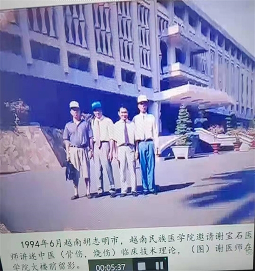 早在90年代初,时任海康县县委书记陈光保邀请谢宝石将“宝石液”的技术带回雷州,旨在造福家乡,为家乡人的健康做出贡献。几年后,谢宝石应越南胡志明民族医学院的诚邀,走出国门,到越南讲解中医创伤科(烧伤、骨伤)临床理论技术,将博大精深的中医文化技术从小起步发扬到美国、加拿大、俄罗斯、越南等国家。这些国家的患者常来求医诊治。