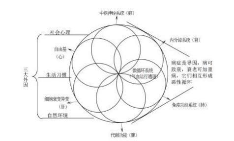 人体衰变因素、发生、发展、演变成恶性循环示意图( 三一七衰变 图 )