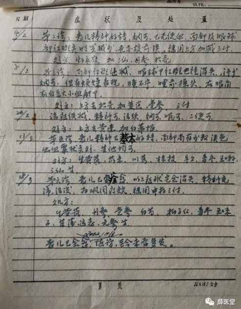 “……我强打精神于凌晨5时对母亲言到,希望拔针出院去找薛老。我深知若不见薛老恐性命堪忧。在此期间母亲见一昼夜病情不退反而加重,遂询问医院医生,医生说该用的办法都用了,目前也没有什么办法了。于是,顾不得薛老劳累,天蒙亮,便扰了先生。先生闻后,连忙嘱咐‘速来’……”