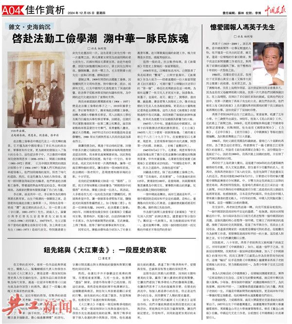 对于与《中国晨报》的渊源,钮则坚认为是一种“轮回”。他回忆说,早在1999年,他借寻根之际拜访了《中国晨报》的总编辑冯英子先生。在那次会面中,他不仅从冯英子先生那里学到了许多宝贵的经验和知识,更被《中国晨报》所承载的爱国情怀和民族精神所深深打动。