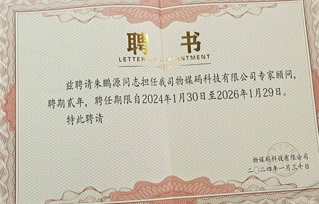 朱鹏源应邀出席物媒码年会,并被聘为专家顾问